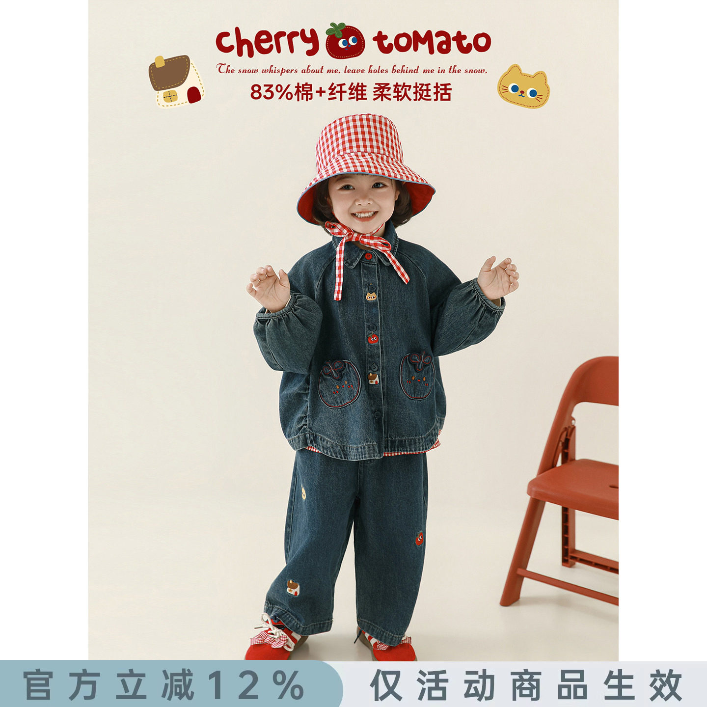棵初2026年春款亲子中大女童百搭牛仔外套大口袋设计宽松廓形夹克