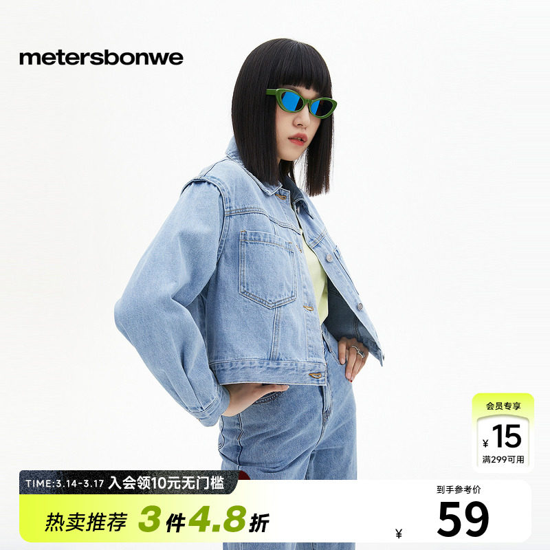 森马牛仔外套女春季短款翻领落肩宽松做旧2026新款工装风高街夹克