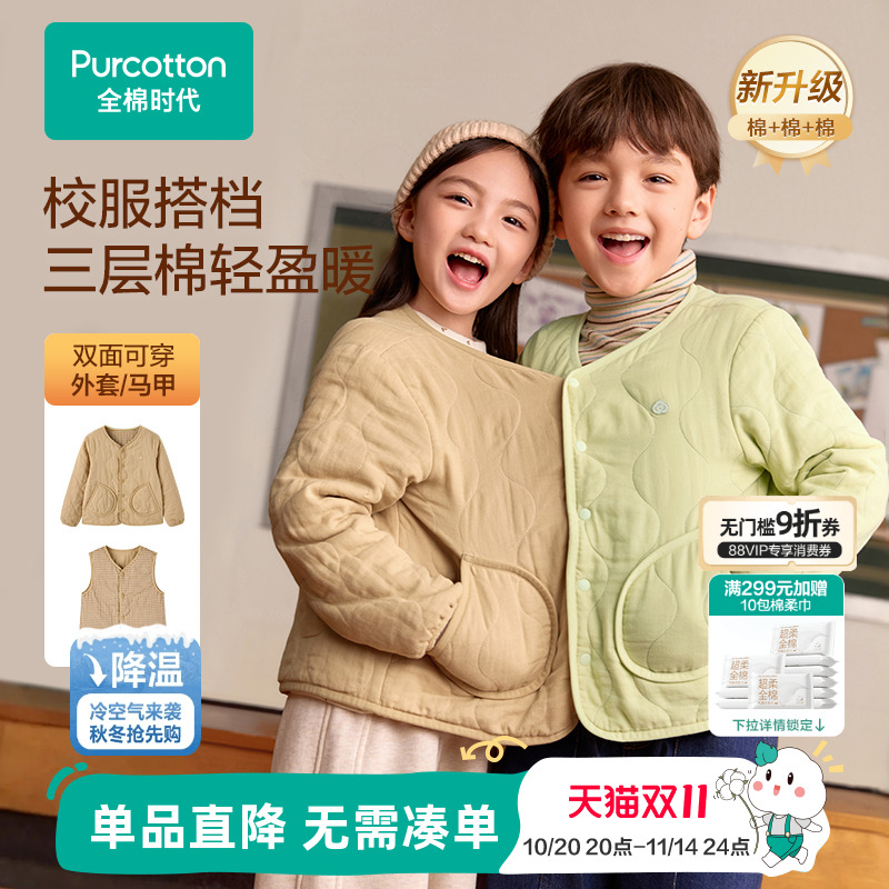【校服神器】全棉时代儿童外套男童女童宝宝纯棉外套保暖棉服冬季