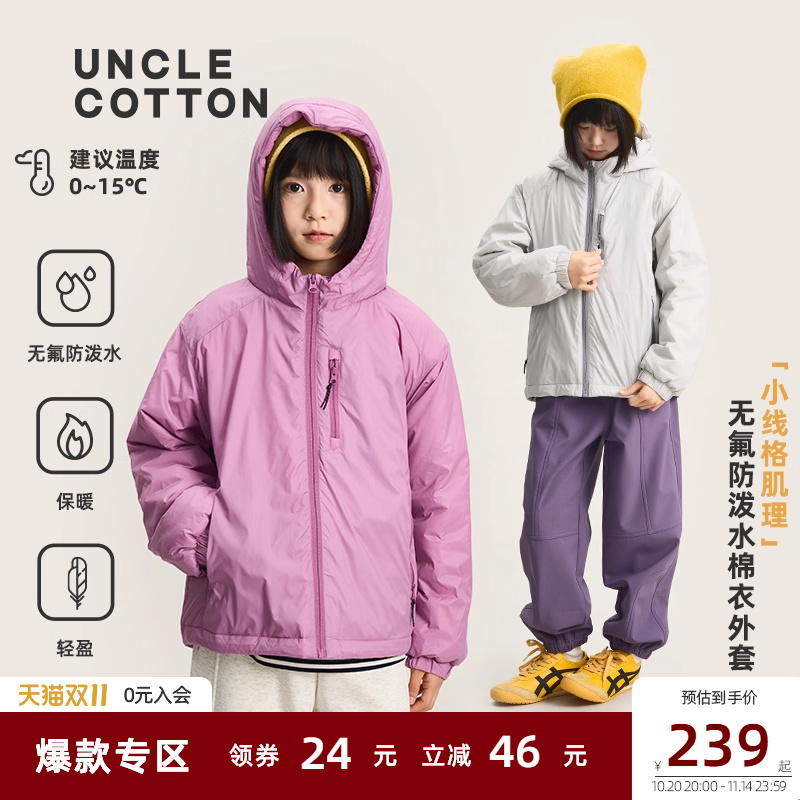 【无氟防小雨棉衣】棉叔叔女童棉服大码初冬厚款保暖夹棉外套男童