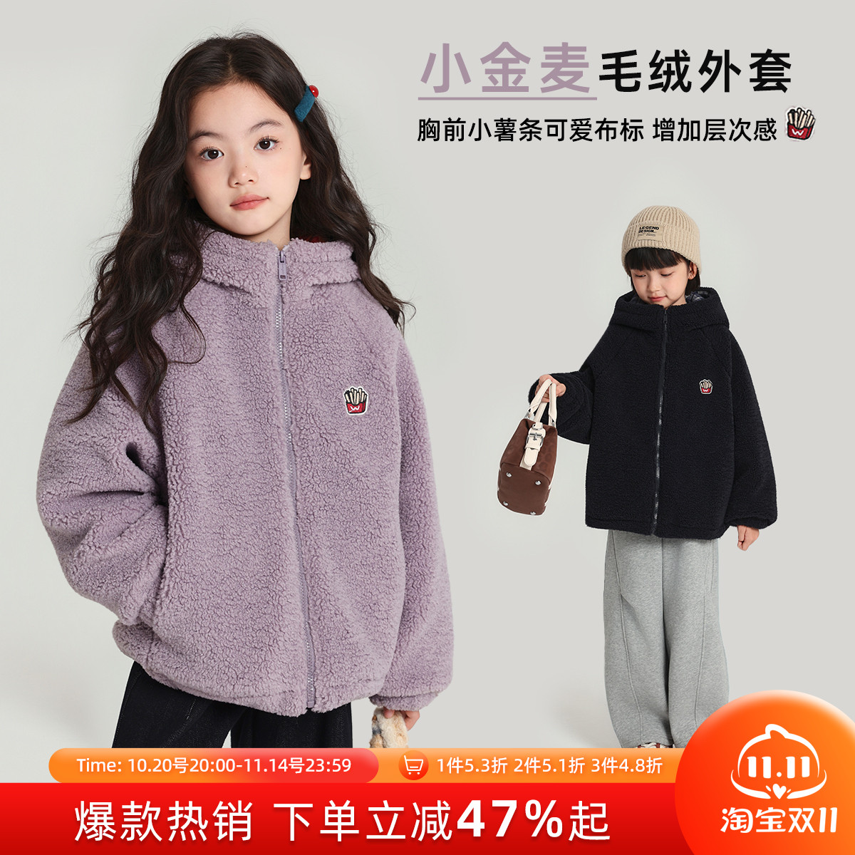 布丁哈鲁冬装童装女童棉服2025秋冬新款儿童百搭小金麦毛绒外套