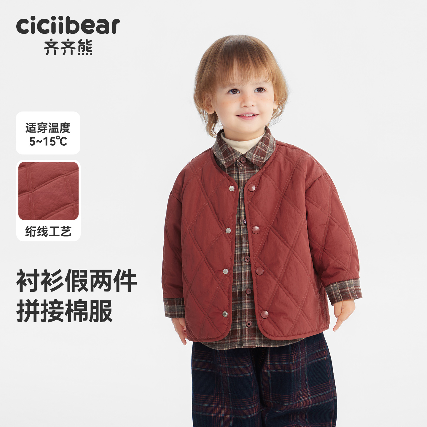 齐齐熊假两件男童夹棉外套宝宝棉服女童冬装儿童加厚棉袄保暖棉衣