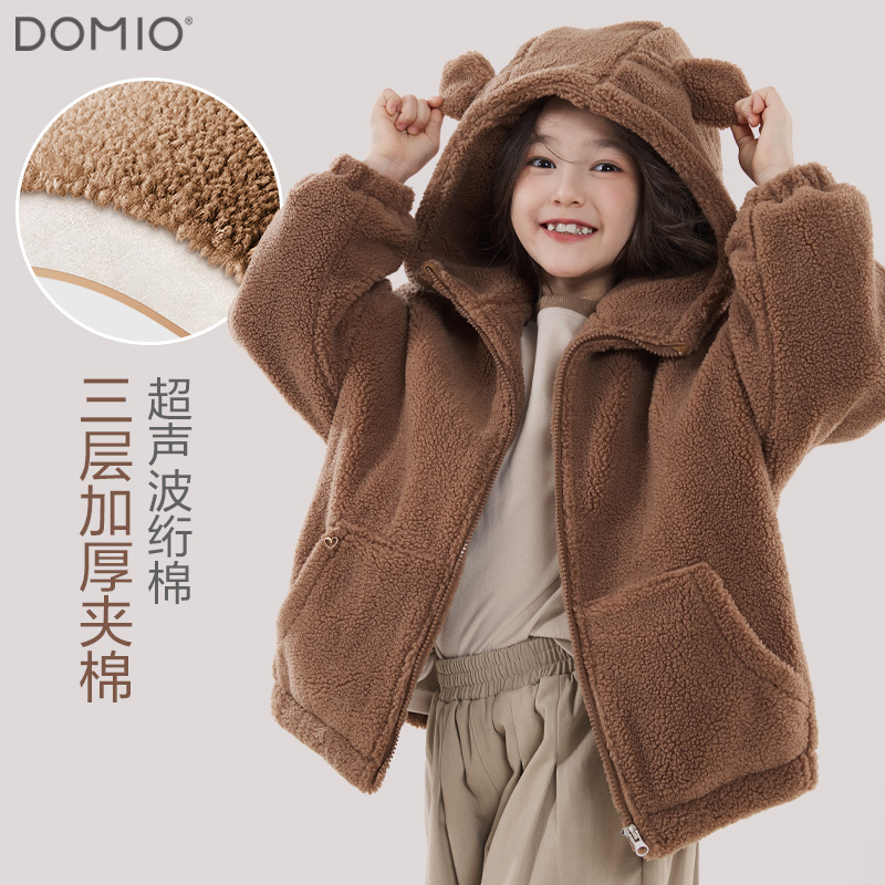 女童外套秋冬新款儿童棉服中大童羊羔绒外衣亲子三层夹棉加厚冬装