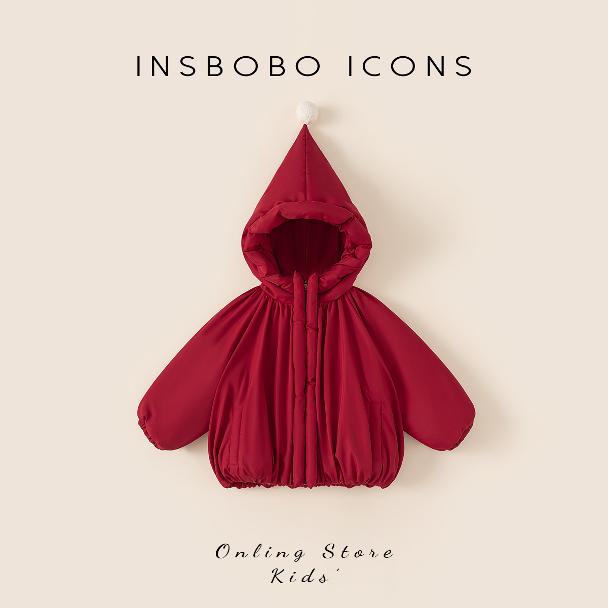 INSbobo女童棉衣2025冬季新款红色儿童棉服女宝保暖连帽秋冬童装