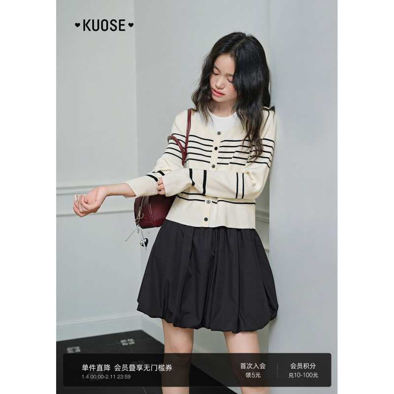 [高智条纹]PSALTER诗篇条纹针织开衫连衣裙智性学院风两件套秋