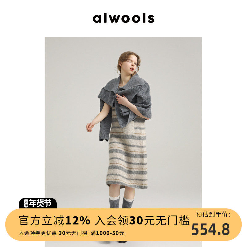 ALWOOLS【明星同款】秋冬新品女士条纹撞色针织连衣裙舒适百搭