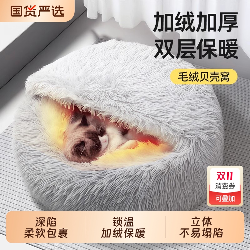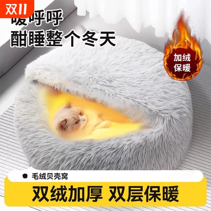 贝壳猫窝冬加厚猫咪睡窝猫咪半封闭式安全感屋毛绒狗窝宠物窝保暖