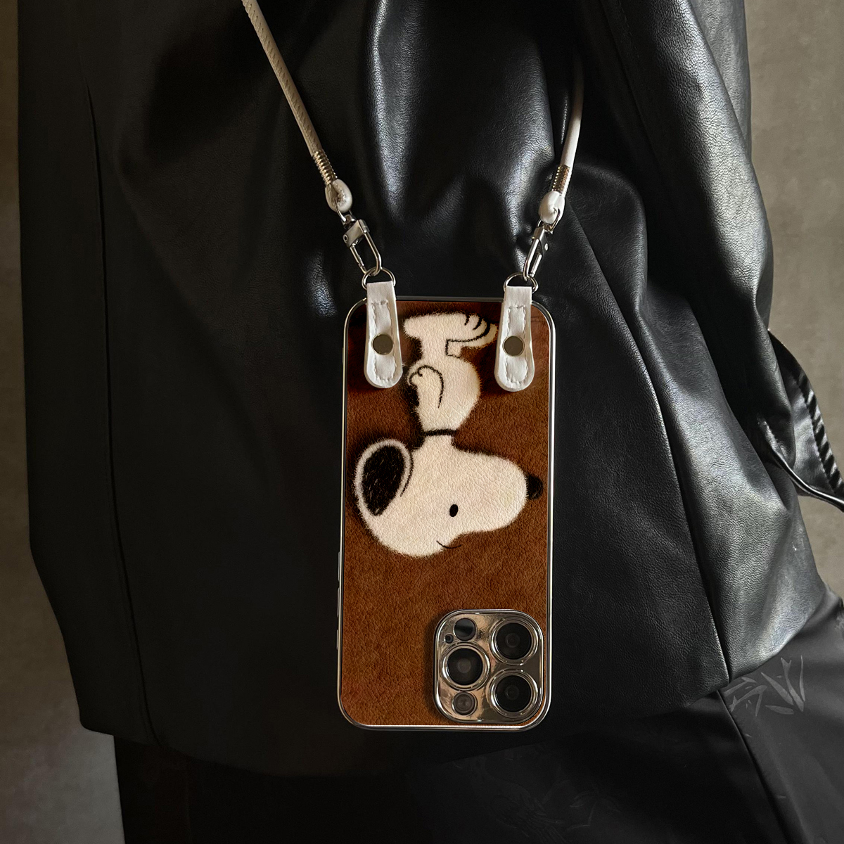加尔 搞怪可爱毛绒狗狗面包背夹挂绳适用手机女款苹果/华为/荣耀/oppo/vivo/小米/红米手机壳