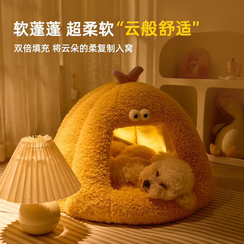 狗窝封闭式小怪兽毛绒狗屋狗床冬季保暖猫咪睡觉安全感窝暖冬神器