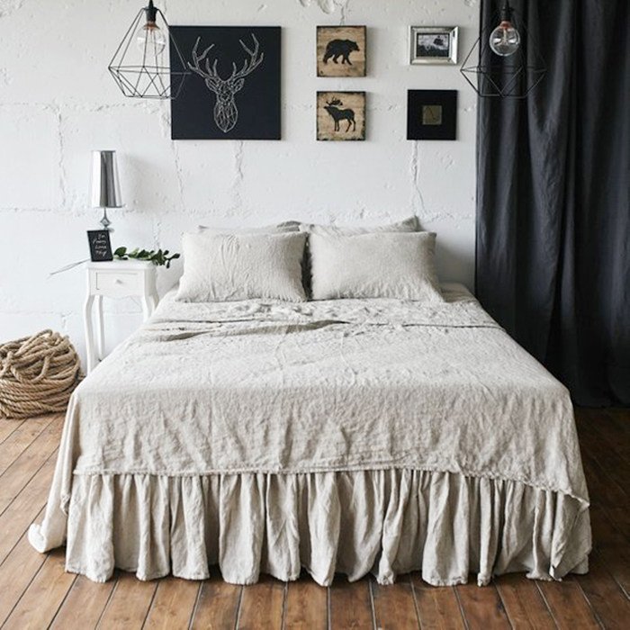 进口纯亚麻四件套床单床裙被套床品三件套床笠款纯色裸睡被罩1.8m