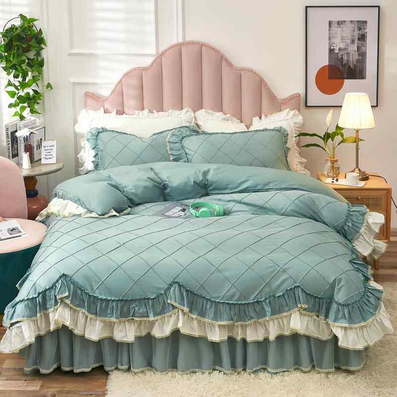 网红款全棉蕾丝四件套少女公主风双人被套纯棉1.8m米床裙床上用品