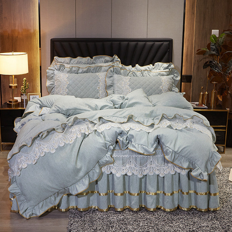 2023新款加厚被套四件套欧式1.8m床裙夹棉公主风蕾丝床单防滑床罩