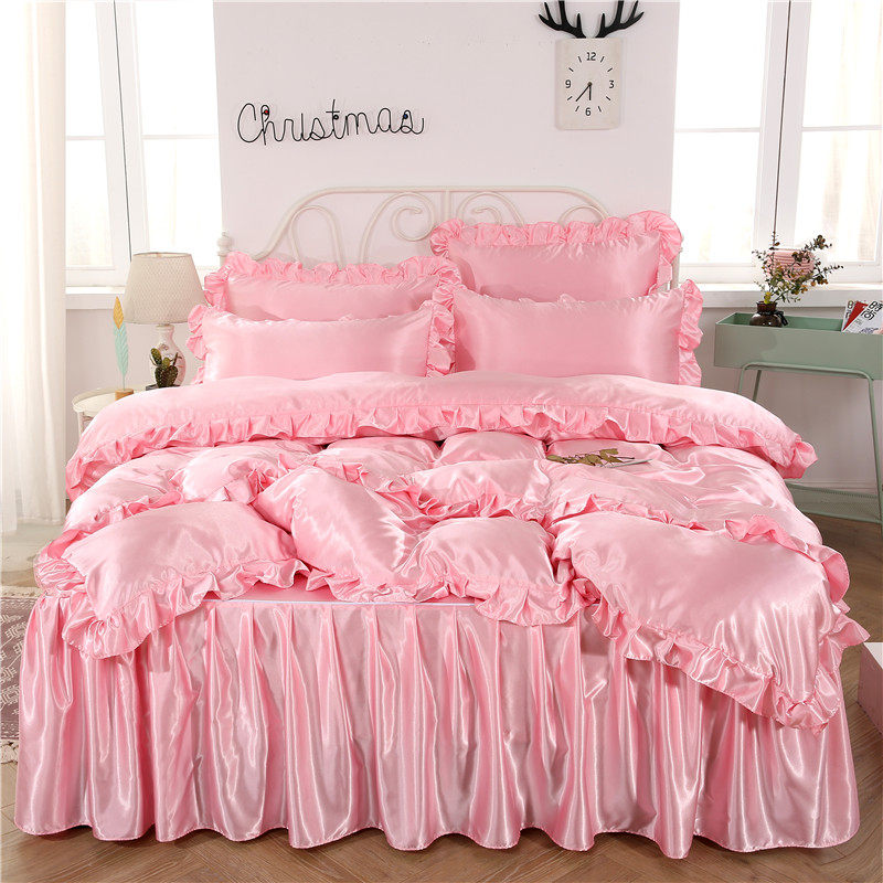 仙女款全棉荷叶边四件套公主风床裙纯棉被套1.5m1.8米亲肤床品