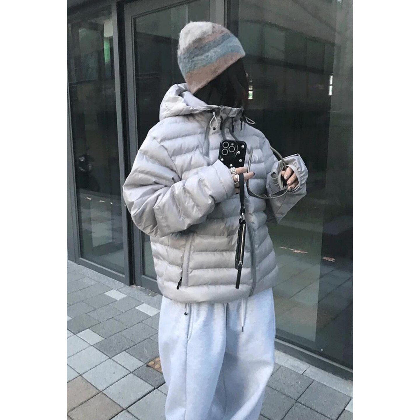 MRDONG韩国代购男女亮面银灰连帽短款棉服蓬松保暖造型饱满上镜佳