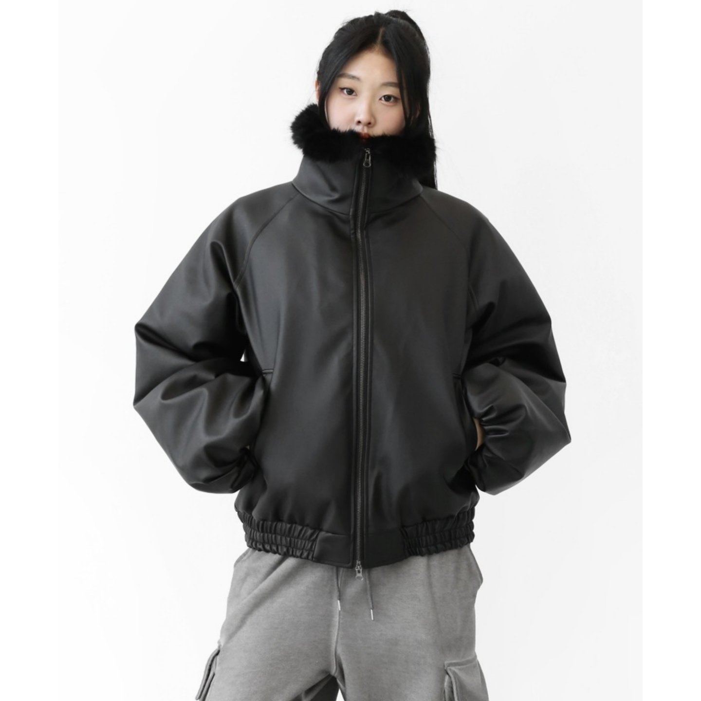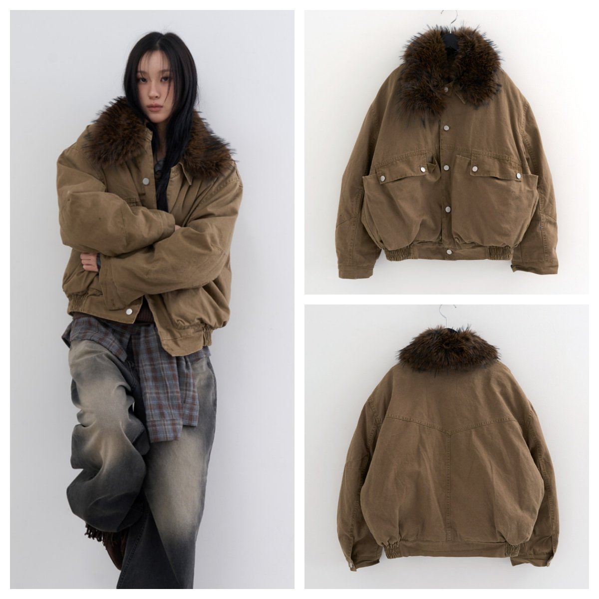 MRDONG韩国代购男女皮感毛领短款蓬松保暖皮棉服外套暗黑冬季街头
