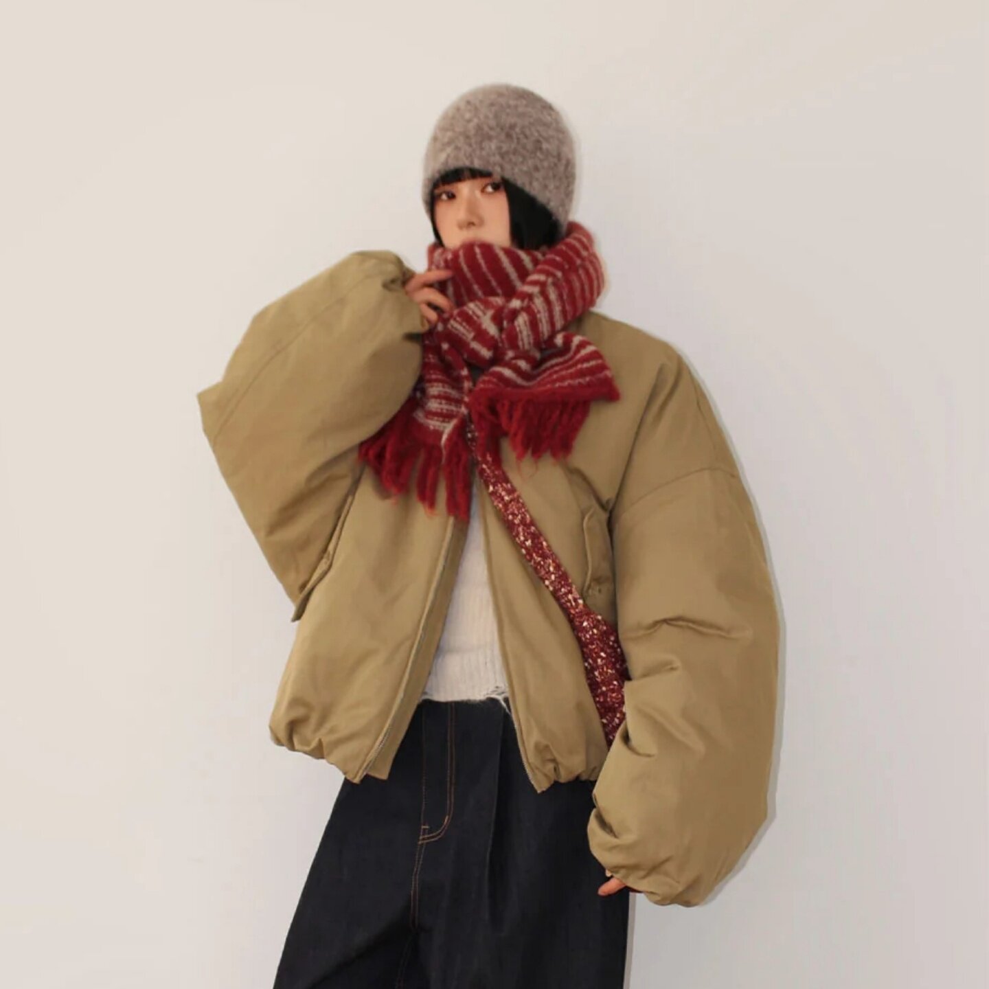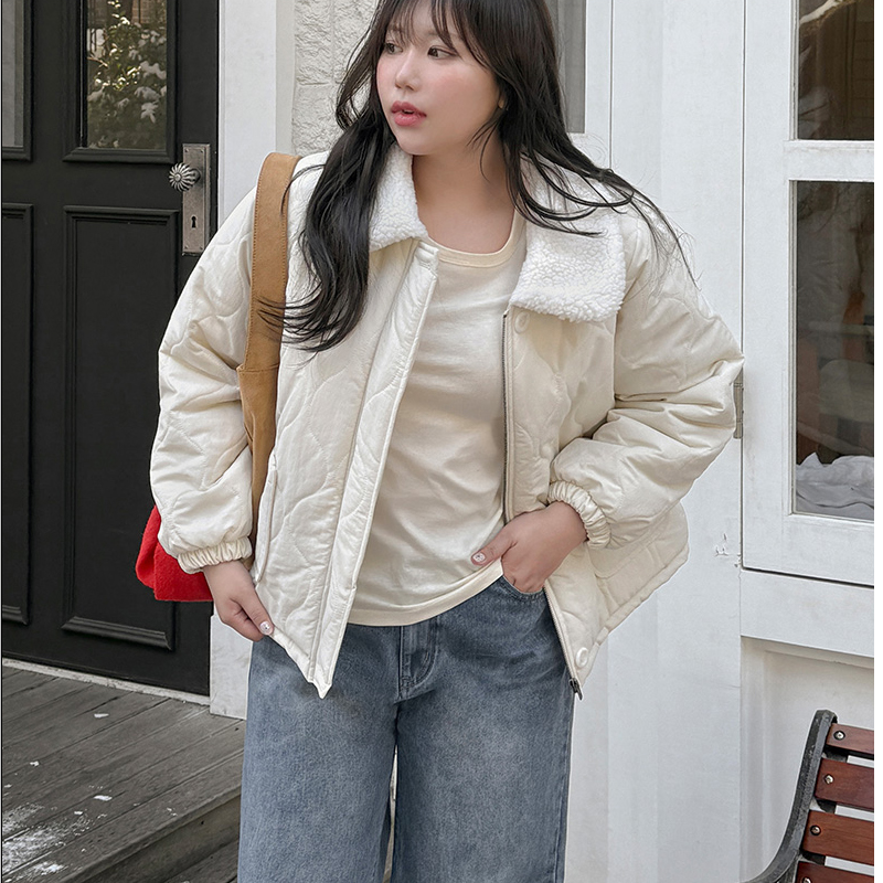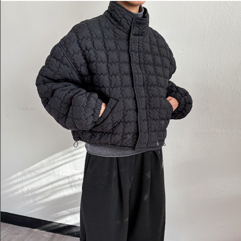 韩国代购大码女装2025靓丽冬装新款立领系扣宽松保暖短款棉衣特82
