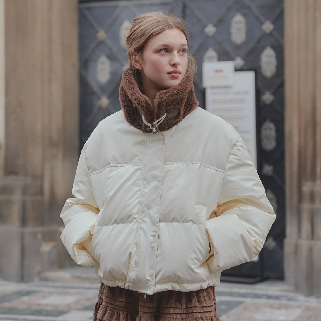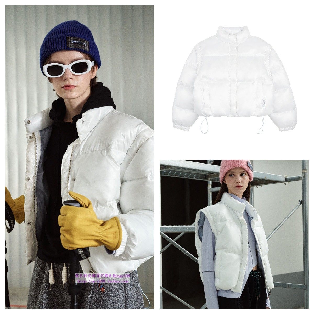 韩国直邮代购2023冬女装白面包服街头袖可拆棉服棉袄短款外套上衣