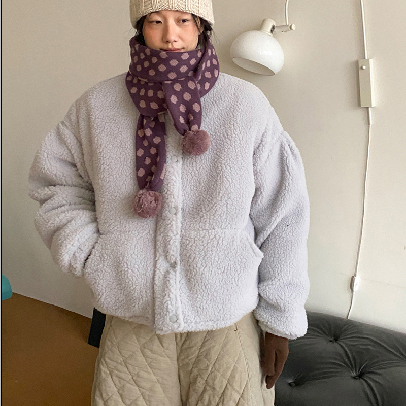 JUNI韩国东大门正品代购冬 仿羊羔毛绒拼接短款棉衣棉服夹克外套