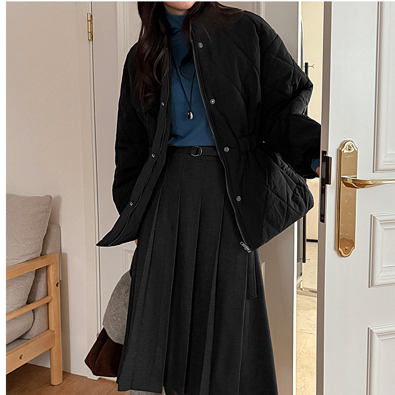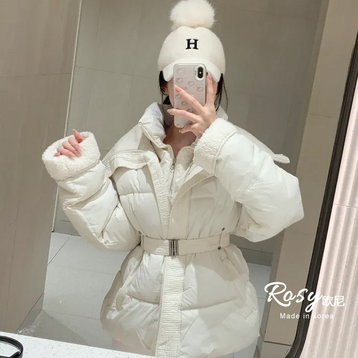 韩国代购大码女装2025靓丽冬装新款立领拉链腰件松紧气质短款棉衣