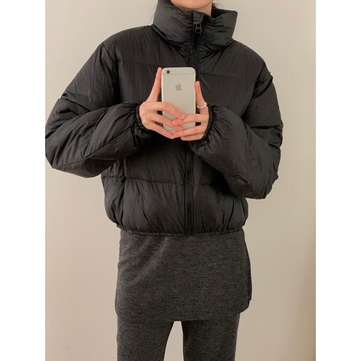 韩国2025冬新款小个子短款立领白鸭绒羽绒服女面包服宽松棉袄外套