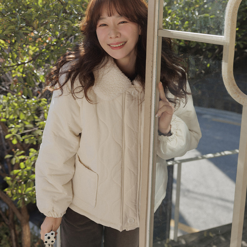 韩国lowear直邮代购2025秋冬女装休闲毛领棉服棉袄短款外套上衣
