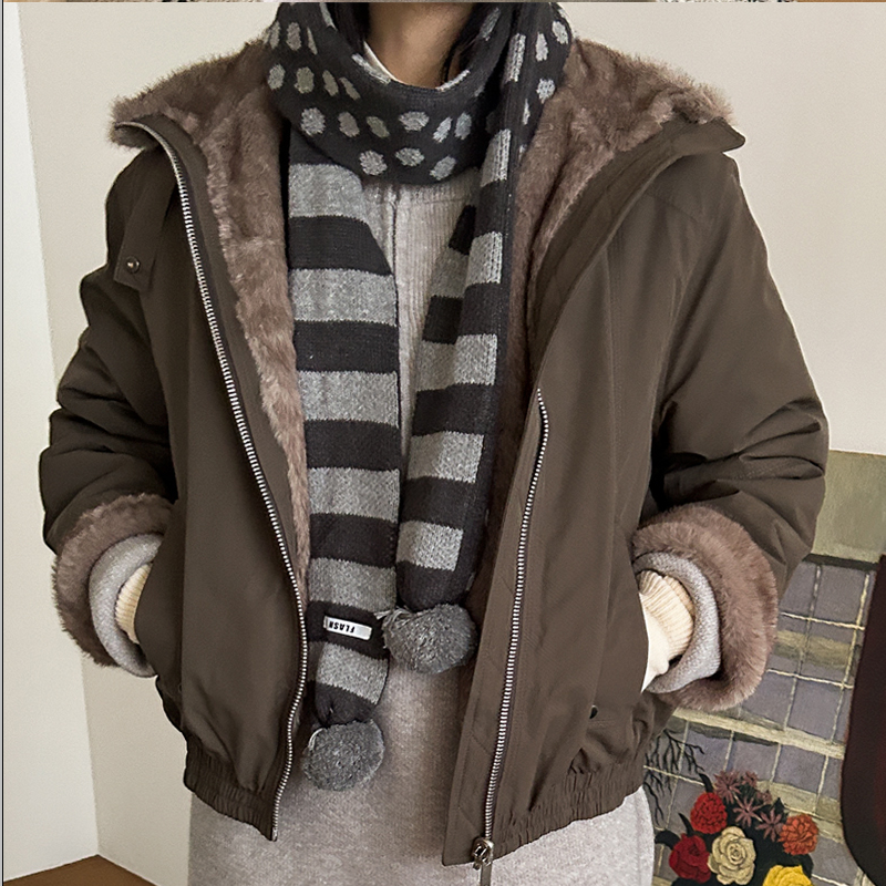 MRDONG韩国代购男女羊毛厚款连帽短款套手设计师棉服秋冬夹克外套