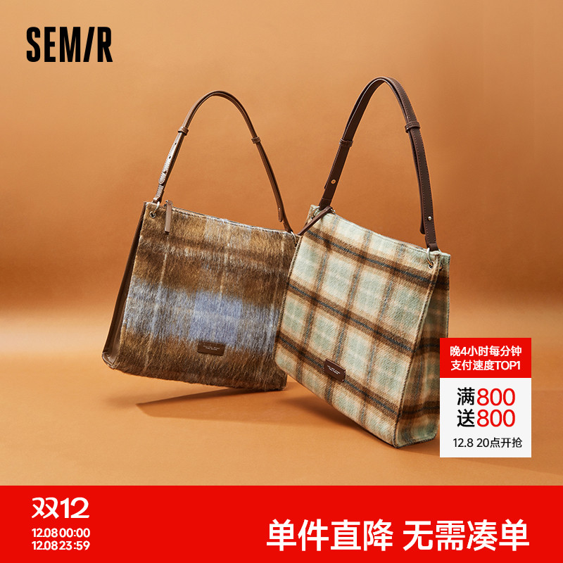 森马包包托特包女2024新款经典格纹单肩包复古手提包大容量软袋潮