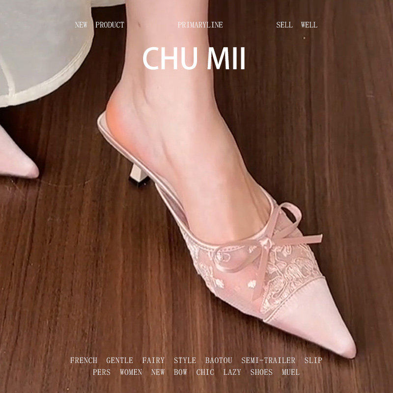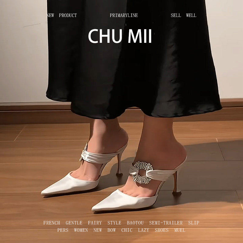 羊皮版!韩系甜美尖头包鞋女名媛风绸缎高跟鞋百搭细跟包头凉拖鞋