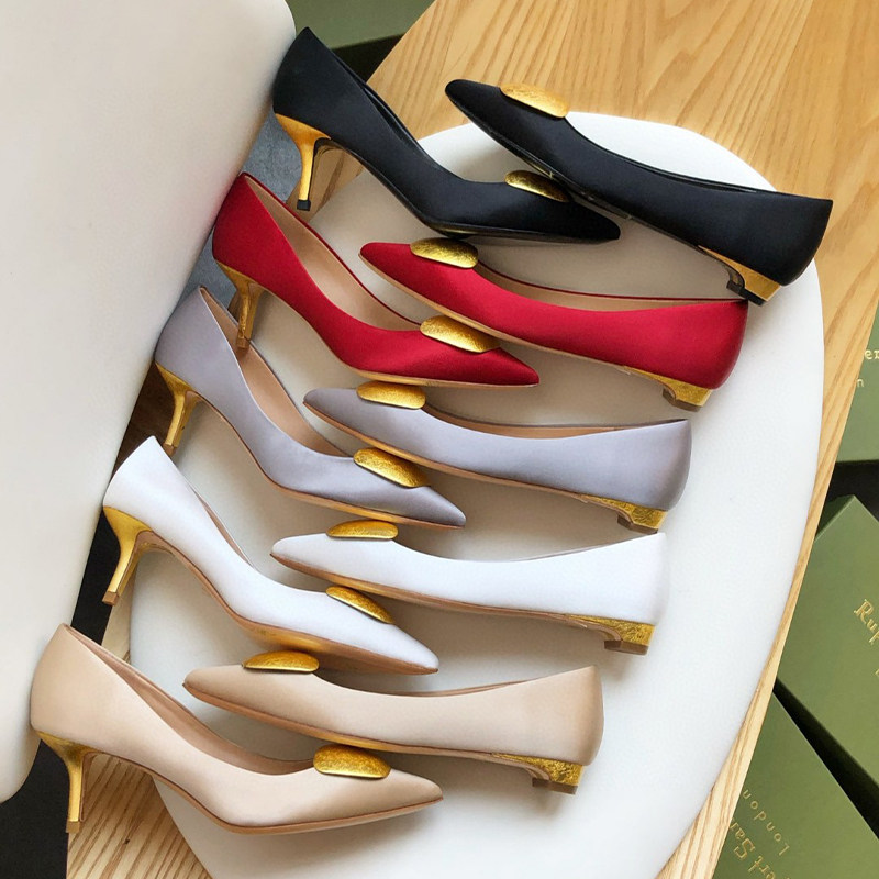 Rupert sanderson真丝绸缎高跟鞋女细跟不累脚配裙子气质职业单鞋