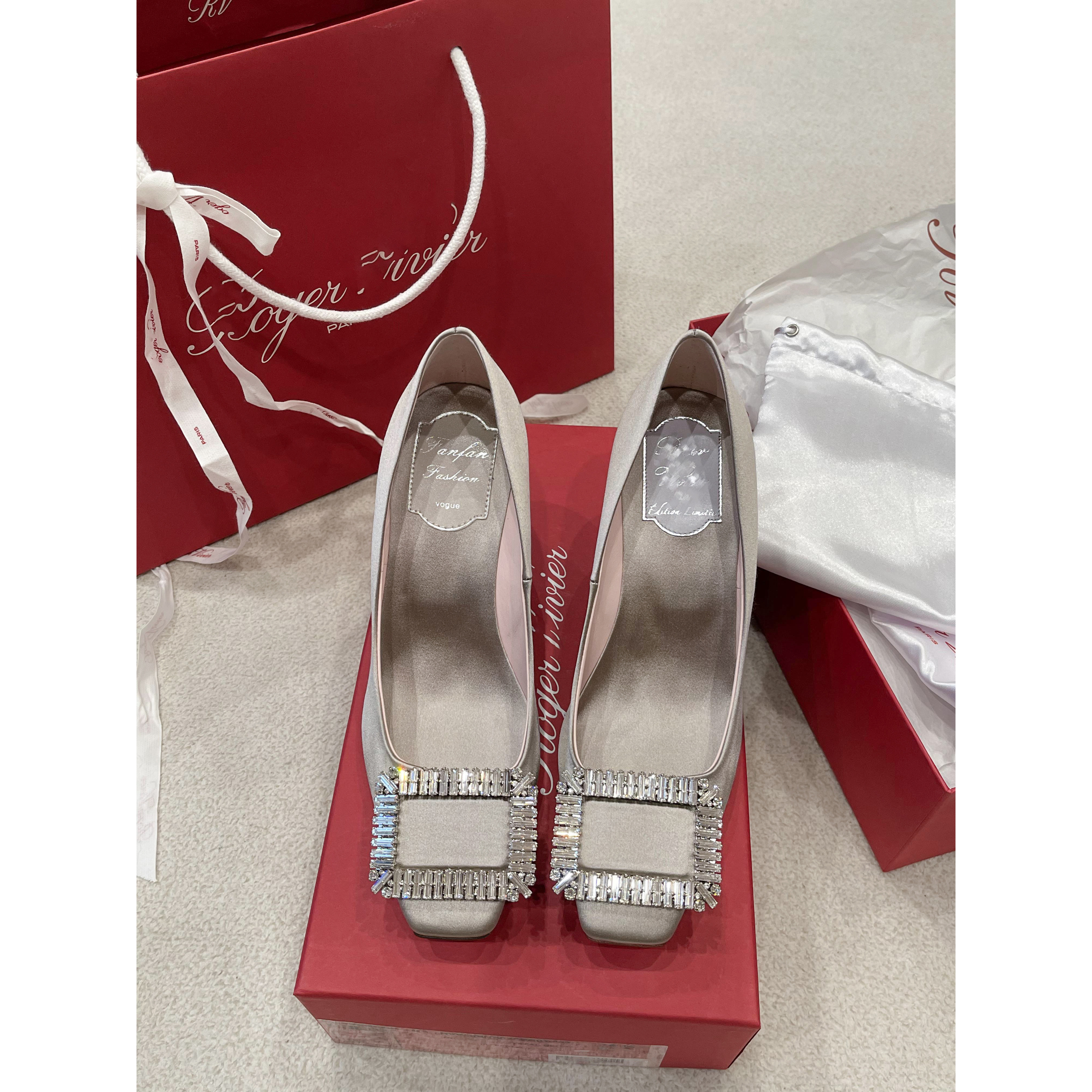 外贸绸缎高跟鞋方头RV水钻方扣单鞋宴会时尚浅口女鞋子真皮欧洲站