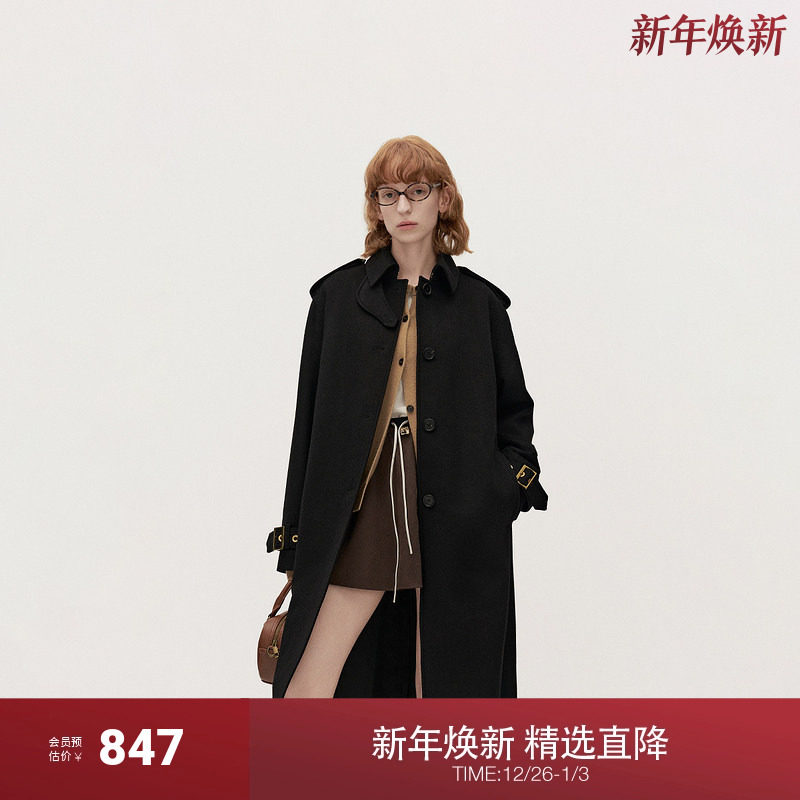 ochirly欧时力 轻量羊毛呢料大衣风衣外套女复古通勤2024秋冬新品