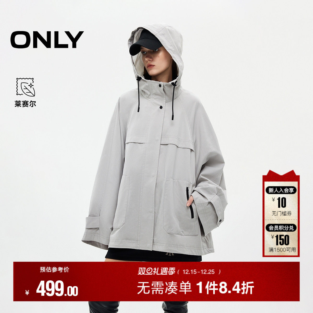 ONLY2025冬季新款潮酷机能风防钻风抽绳按扣长袖连帽风衣外套女