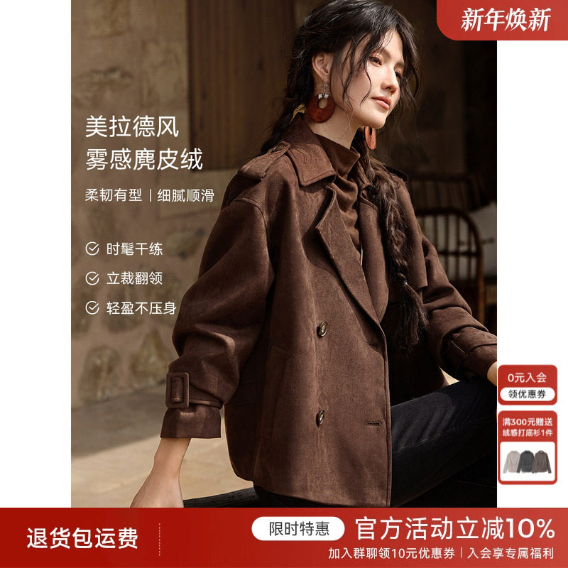 XWI欣未美拉德麂皮绒短款风衣外套女秋冬独特超好看休闲夹克上衣