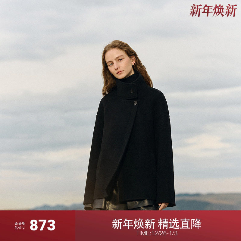高端100%双面羊绒大衣女外套风衣纯羊毛扣子高档毛呢短款小个子