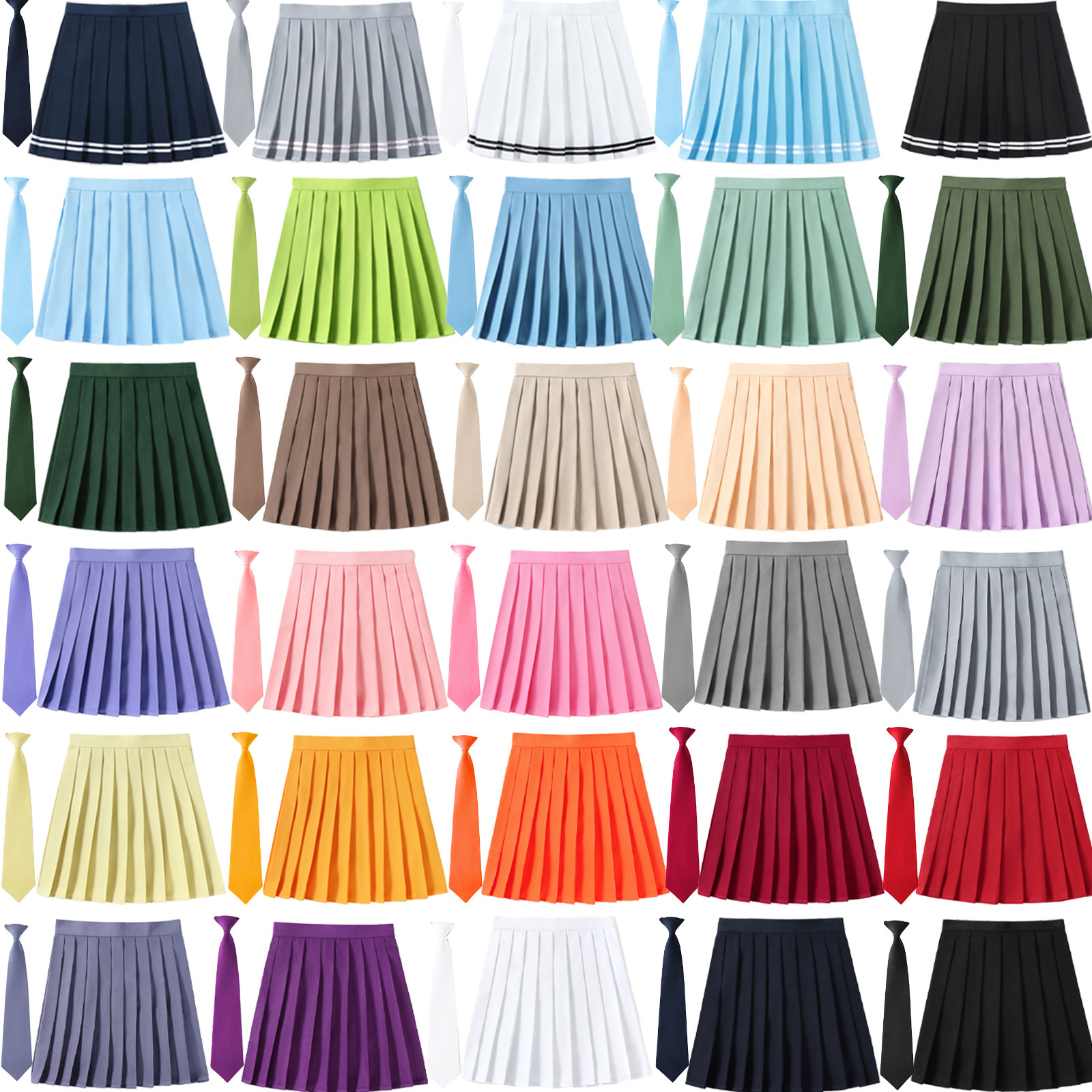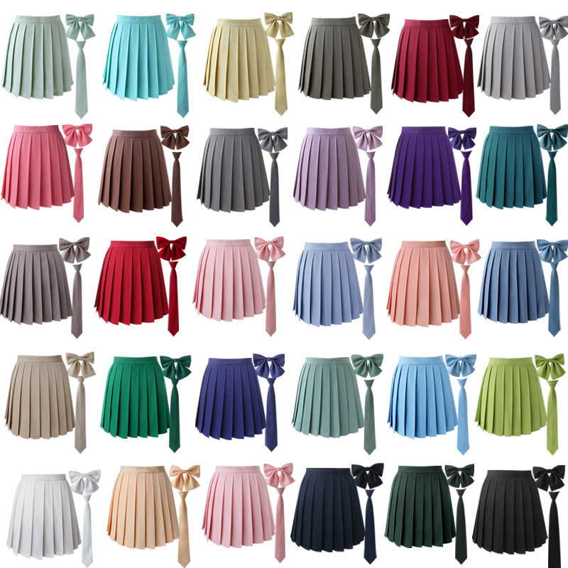 裙+领结+领带纯色百褶裙基础款短高腰半身学院校服班服COS动漫裙