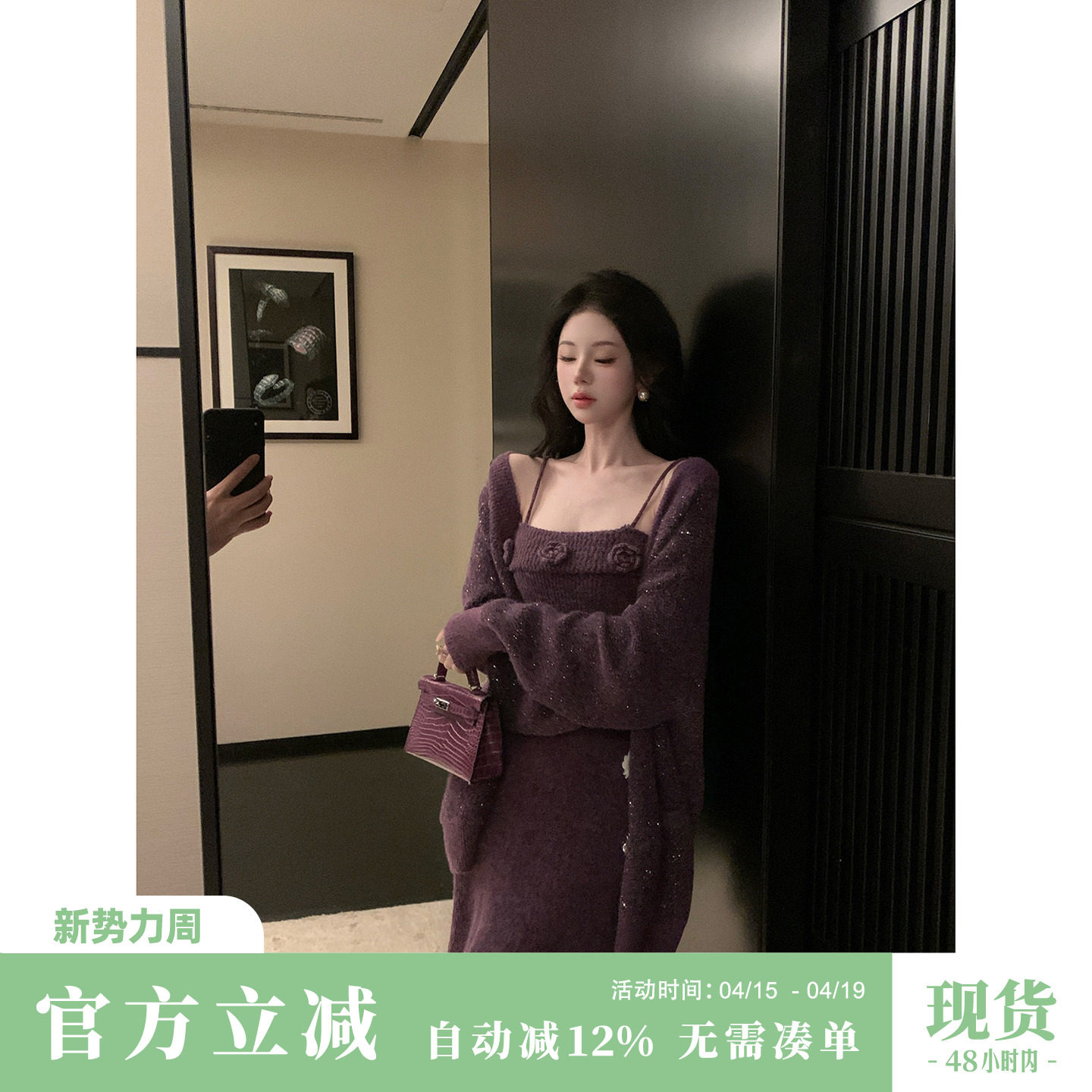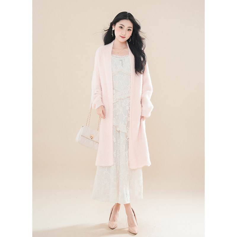 雅乔【星花怒放】秋冬慵懒羊驼毛毛衣外套亮丝羊毛针织吊带裙套装