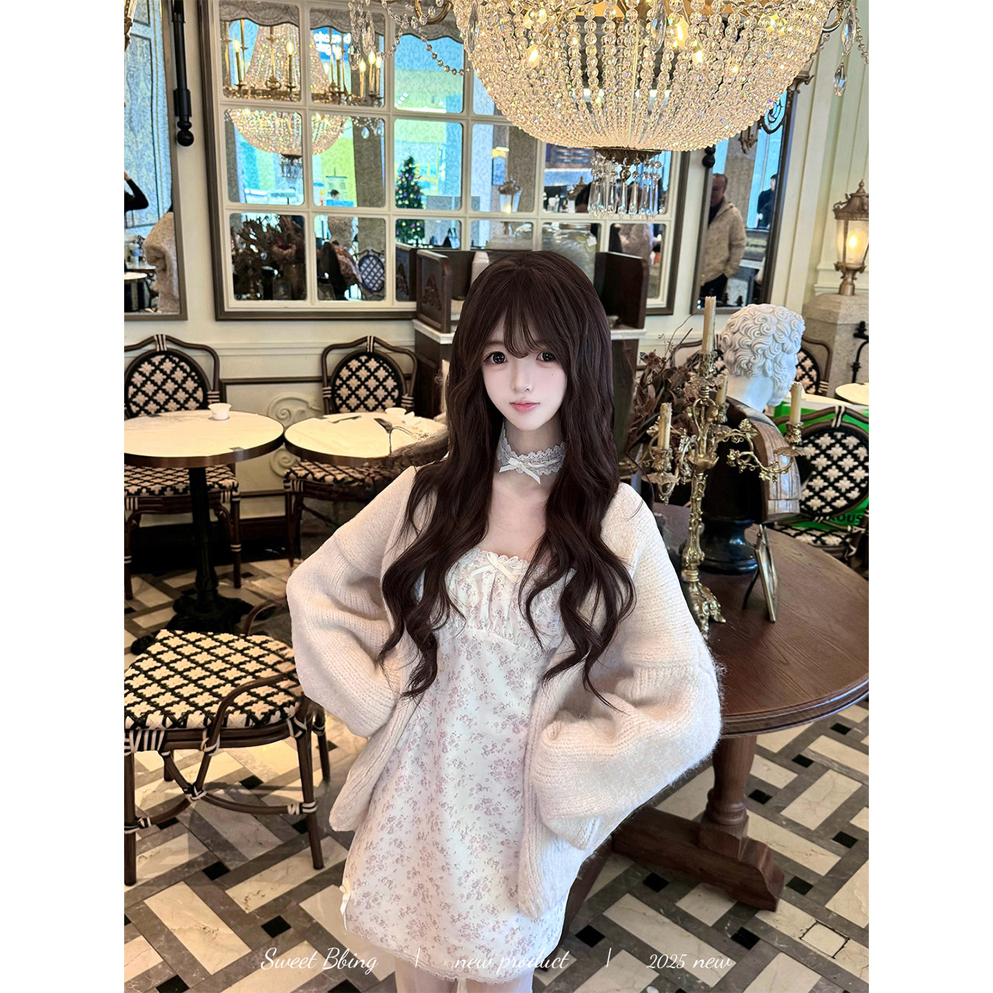 BBING甜饼 温柔糯糯 秋冬纯欲显瘦开衫毛衣针织衫外套&碎花吊带裙