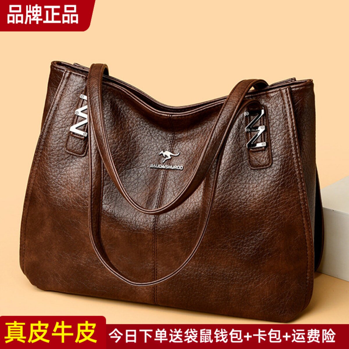 袋鼠真皮女包大容量托特包女士包包2026新款时尚品牌单肩牛皮大包