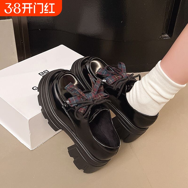 松糕小皮鞋女英伦风2024新款春秋配裙子jk单鞋黑色系带厚底乐福鞋