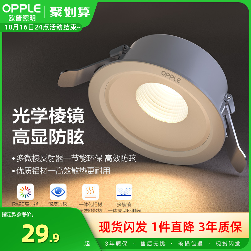 欧普led筒灯3w5w嵌入式天花灯客厅吊顶孔灯桶灯8公分家用雅韵防眩