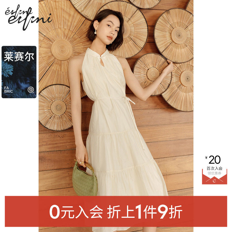 【0元入会1件9折】伊芙丽outlets店淡人莱赛尔提花盘扣连衣裙夏女