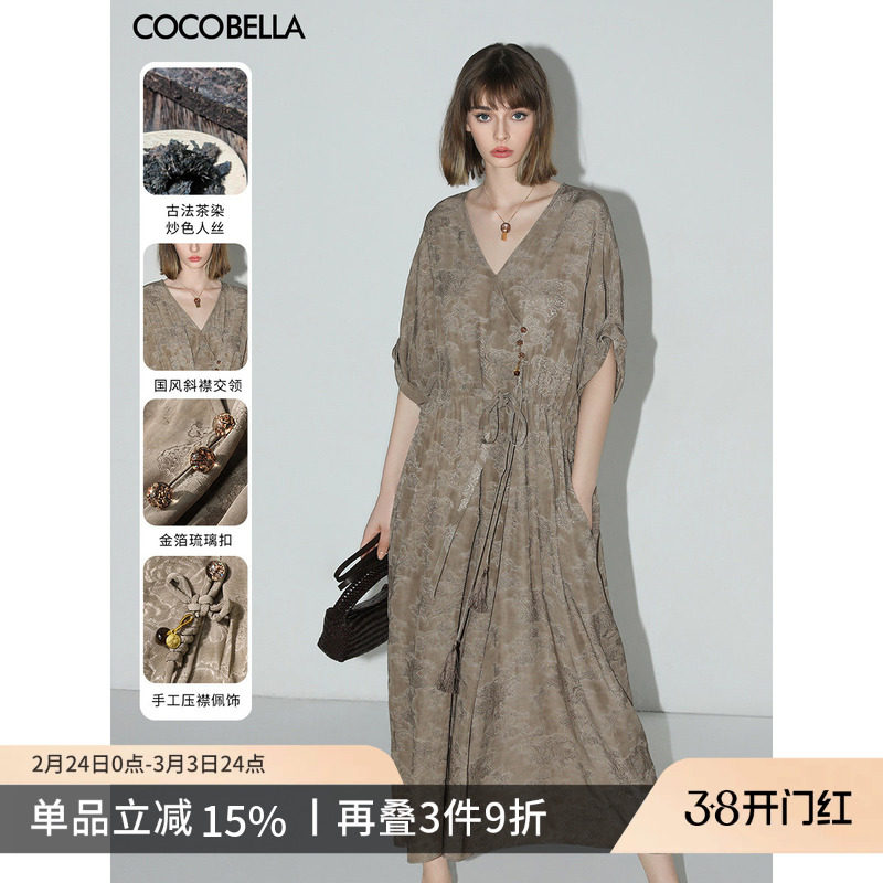 COCOBELLA[100%人丝]轻奢新中式提花炒色国风盘扣连衣裙女FR0020