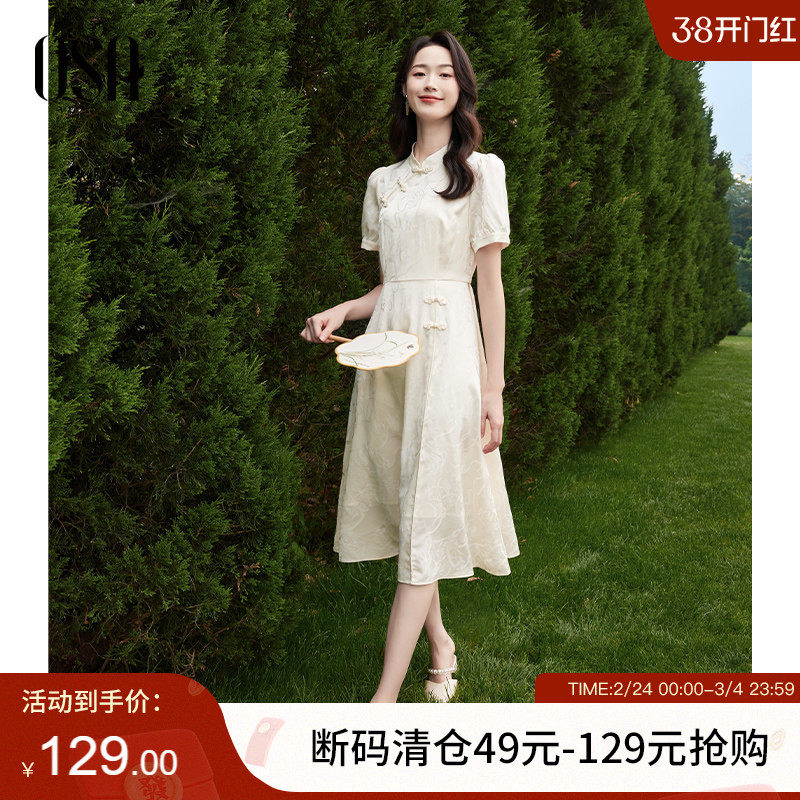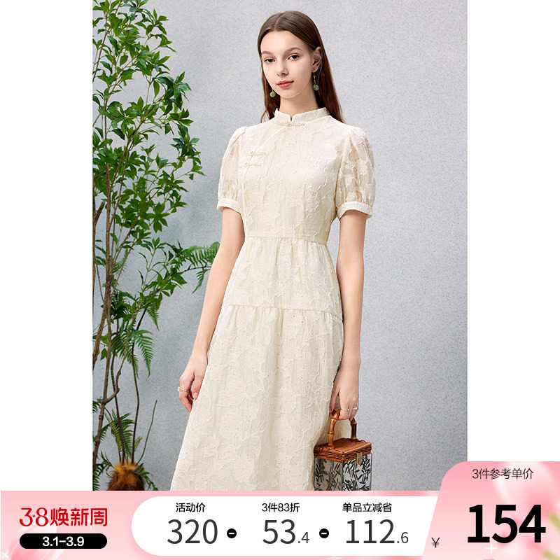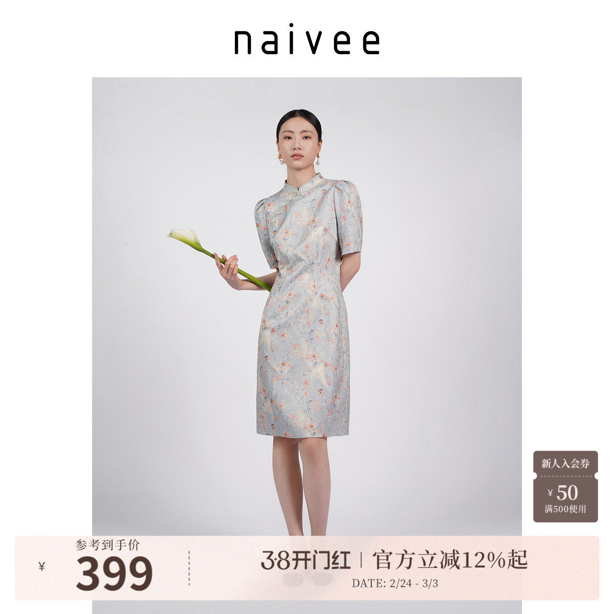 商场同款naivee纳薇立领改良旗袍新中式提花盘扣连衣裙25年夏新款
