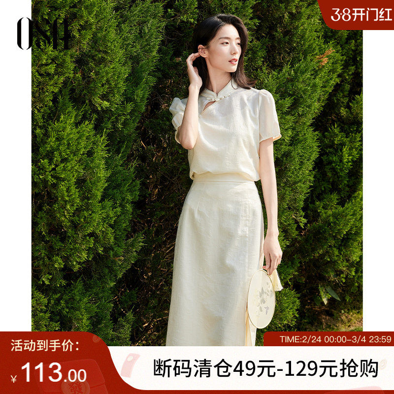 OSA欧莎轻国风盘扣连衣裙女夏装上衣半身裙搭配一整套新中式套装