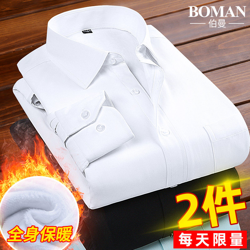 冬季男士长袖衬衫加绒加厚保暖白色黑色商务西装衬衣寸衫上衣男装
