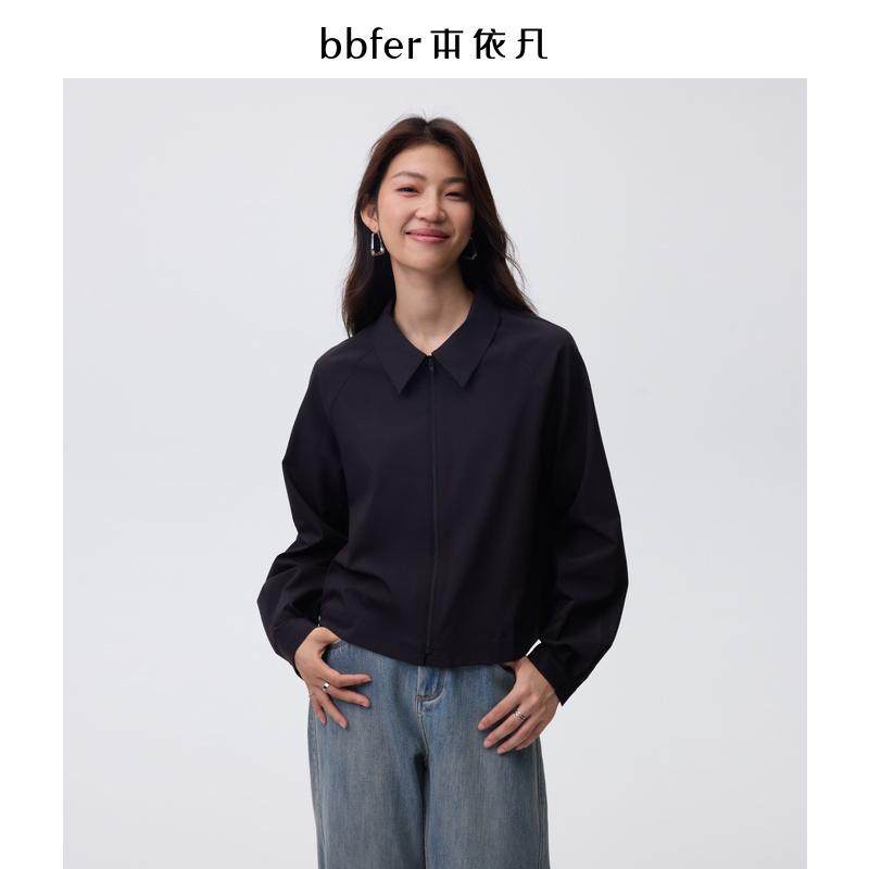 bbfer本依凡冬季衬衫女法式简约短款黑色衬衣上衣内搭SSSCY0126