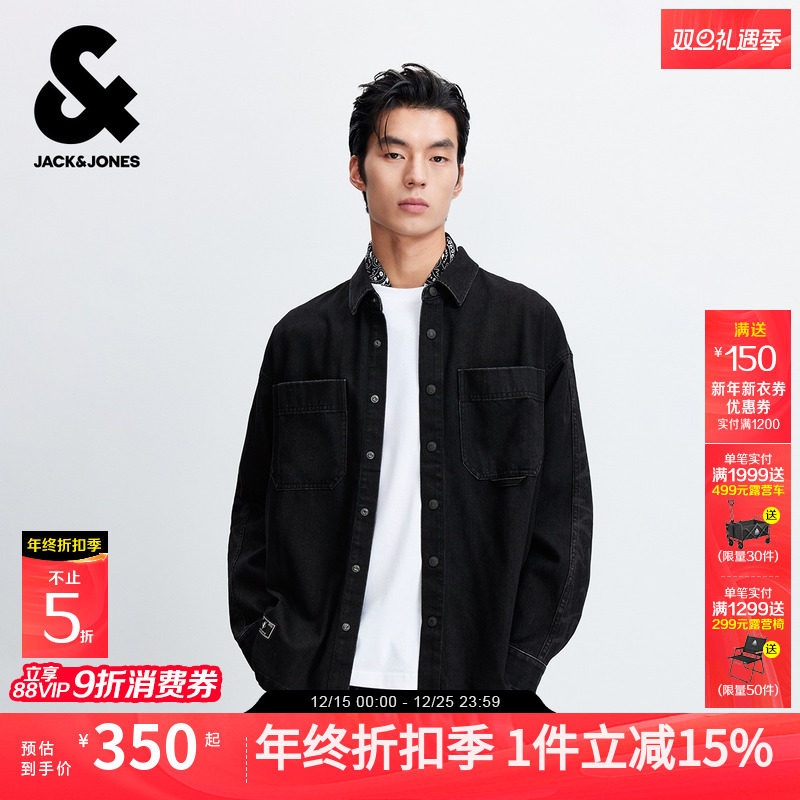 杰克琼斯男装士2025年秋季新款牛仔衬衫翻领黑色衬衣质感宽松上衣