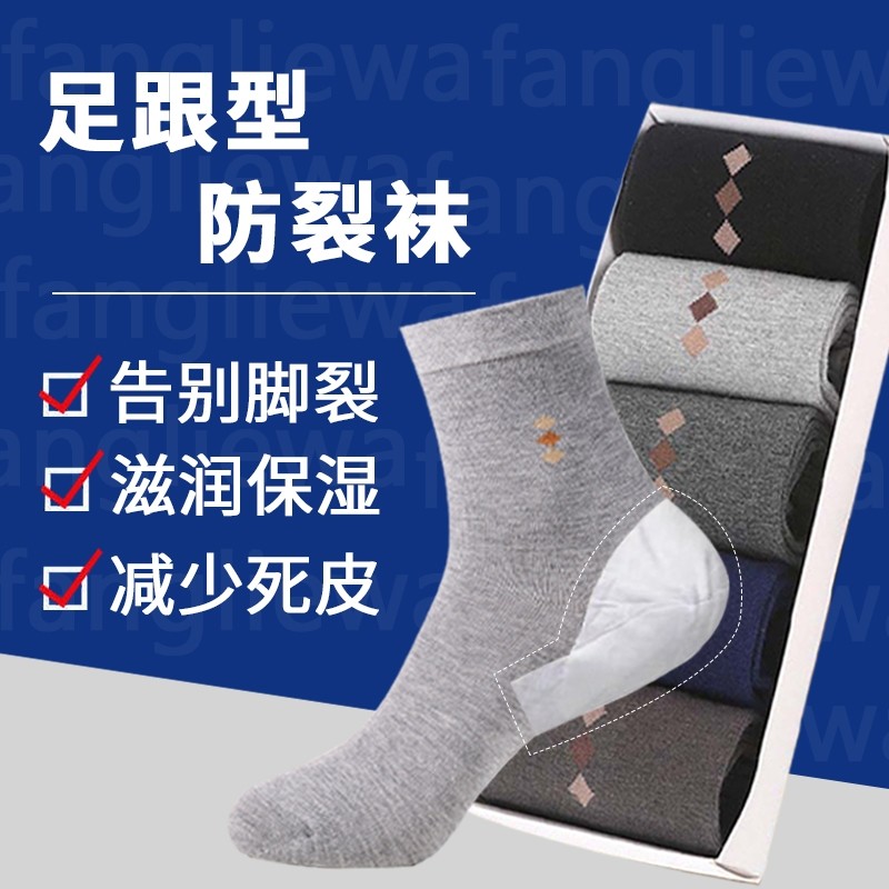 防裂袜男脚后跟干裂足跟型防裂袜子男士抗菌保湿中筒袜后跟防裂袜