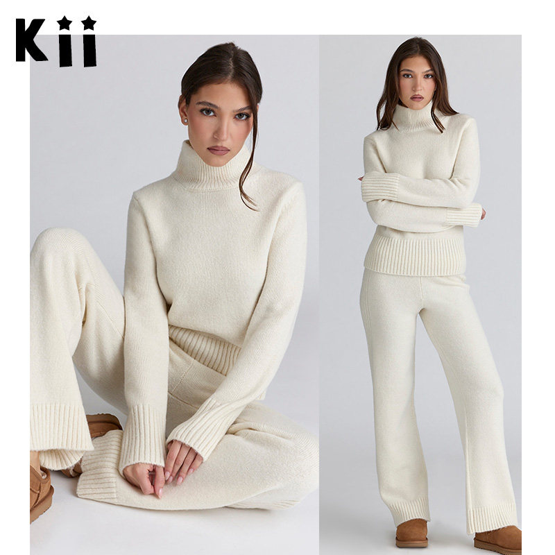 - 喇叭袖高领毛衣