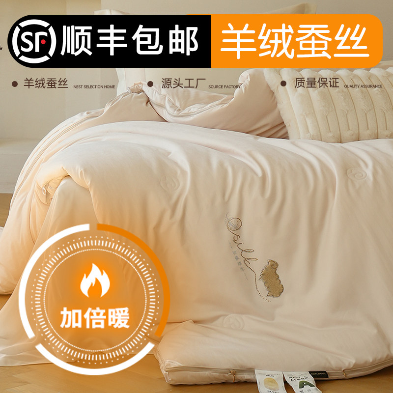 水星家纺蚕丝澳洲羊毛二合一被裸睡抑菌子母被子保暖被芯冬季床品